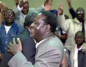 Odinga with Mwai Kibaki during the latter’s first term in office as the president of Kenya. Image-Jaluo.